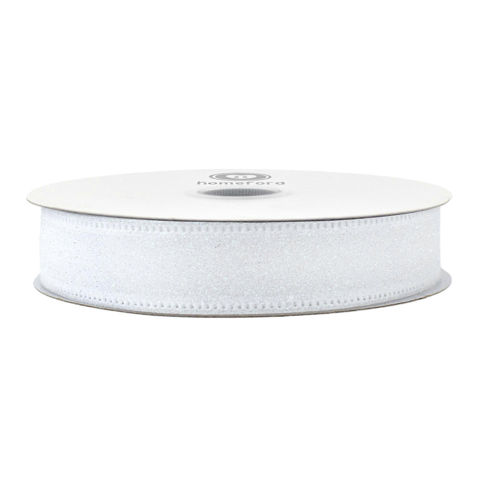HOMEFORD Christmas Flat Glitter Wired Ribbon, 7/8-inch, 10-yard, White