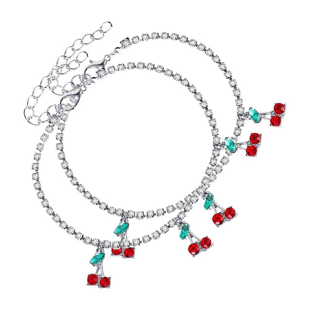 Beach Anklet Cherry Rhinestone for Women 4Pcs Zinc Alloy Foot Jewelry