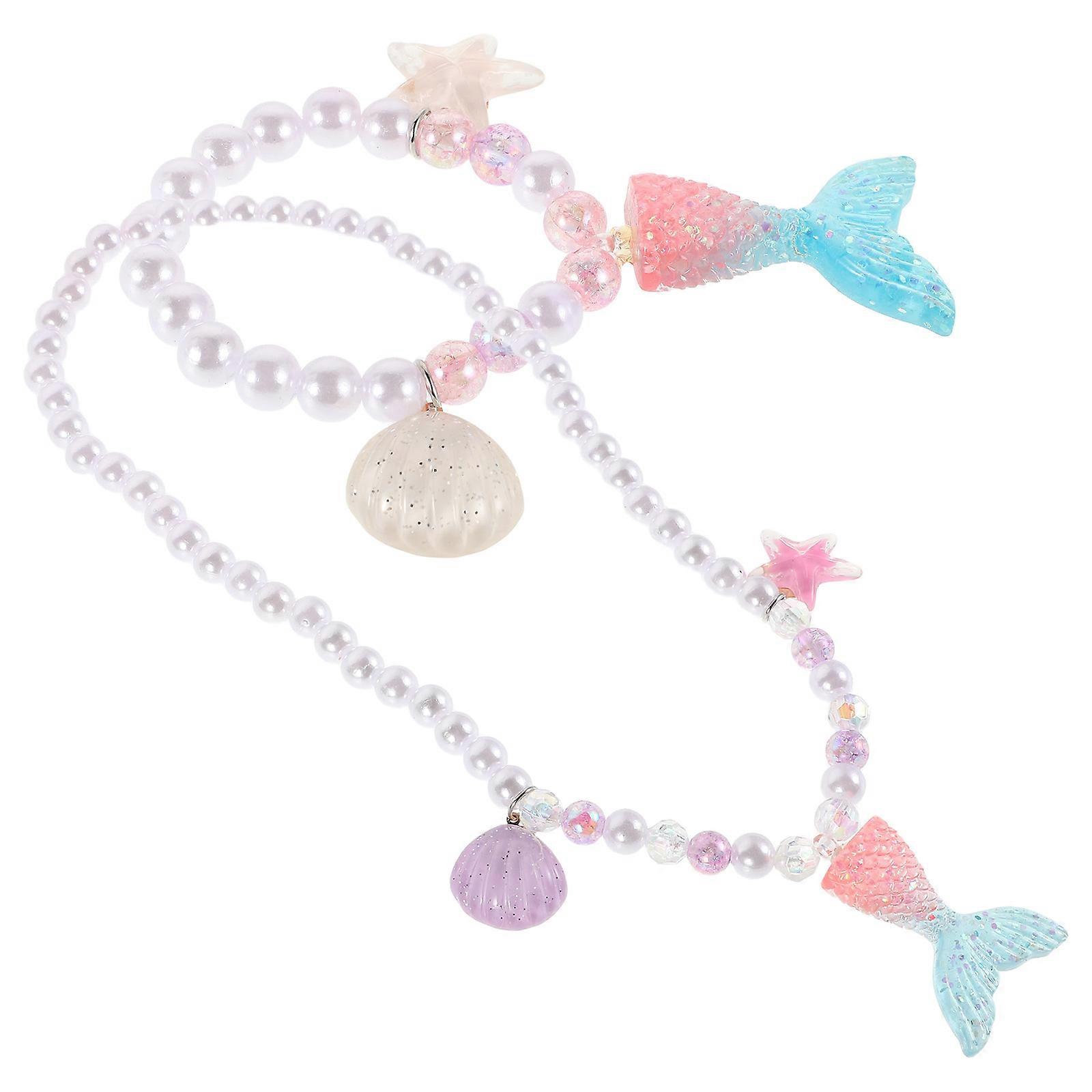 Designed for little girls who love mermaids, this jewelry set includes a beautiful mermaid pendant necklace and matching accessories. The set is ideal for dress-up, birthday parties, or as a special product. Each piece is crafted to be both durable and stylish, ensuring that your child can enjoy them for a long time. Features -Color:Multi -Material:Plastic, resin -Size:23.00X11.50X1.00cm/9.04X4.52X0.39in (necklace) -Size:10.00X8.50X1.00cm/3.93X3.34X0.39in (bracelet) -Adorable mermaid theme: the jewelry set features a delightful mermaid theme that appeals to young girls, making them feel like little princesses -Sturdy construction: built with durable materials, this set is designed to endure frequent use without easily breaking or losing its charm -Mix and match: the set includes multiple pieces that can be combined in various ways, offering versatile styling options for different events -sturdy detailing: the intricate craftsmanship ensures that each piece is beautifully detailed, maintaining its shine and elegance over time -Ideal for little girls: designed to add a cute and charming touch, this jewelry set is ideal for enhancing the look of young girls Package list: 1 x Mermaid Necklace 1 x Mermaid Bracelet