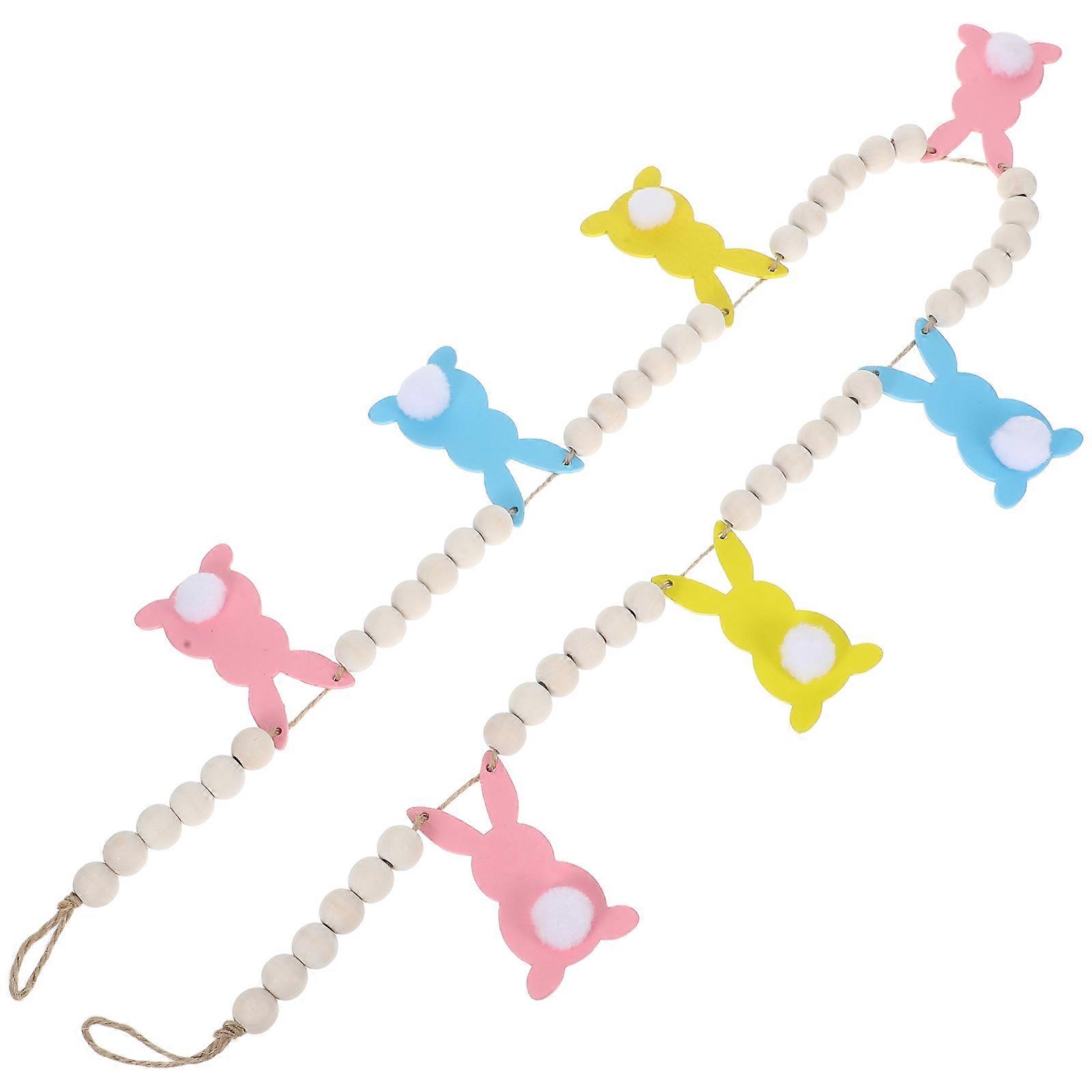 Easter Party Banner Wooden Bunny Hanging Banner with Wood Bead Garland
