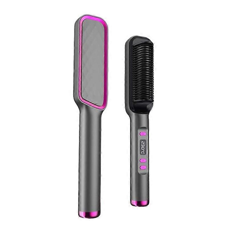 2025 NEW! Hair Straightener Comb, Negative Ionic Hair Straightener Brush, 10s Fast Heating Auto Temperature Lock Smooth Daily Dark Grey
