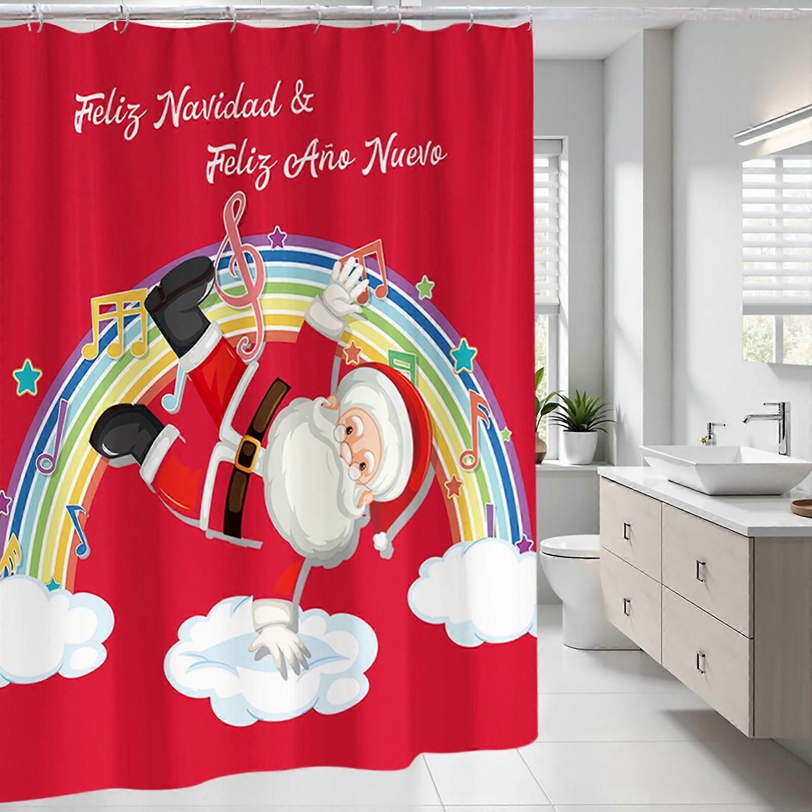 Antqov Christmas Shower Curtain, Waterproof Holiday Patterns, Washable Polyester Bath Curtain for Home Bathroom Decor