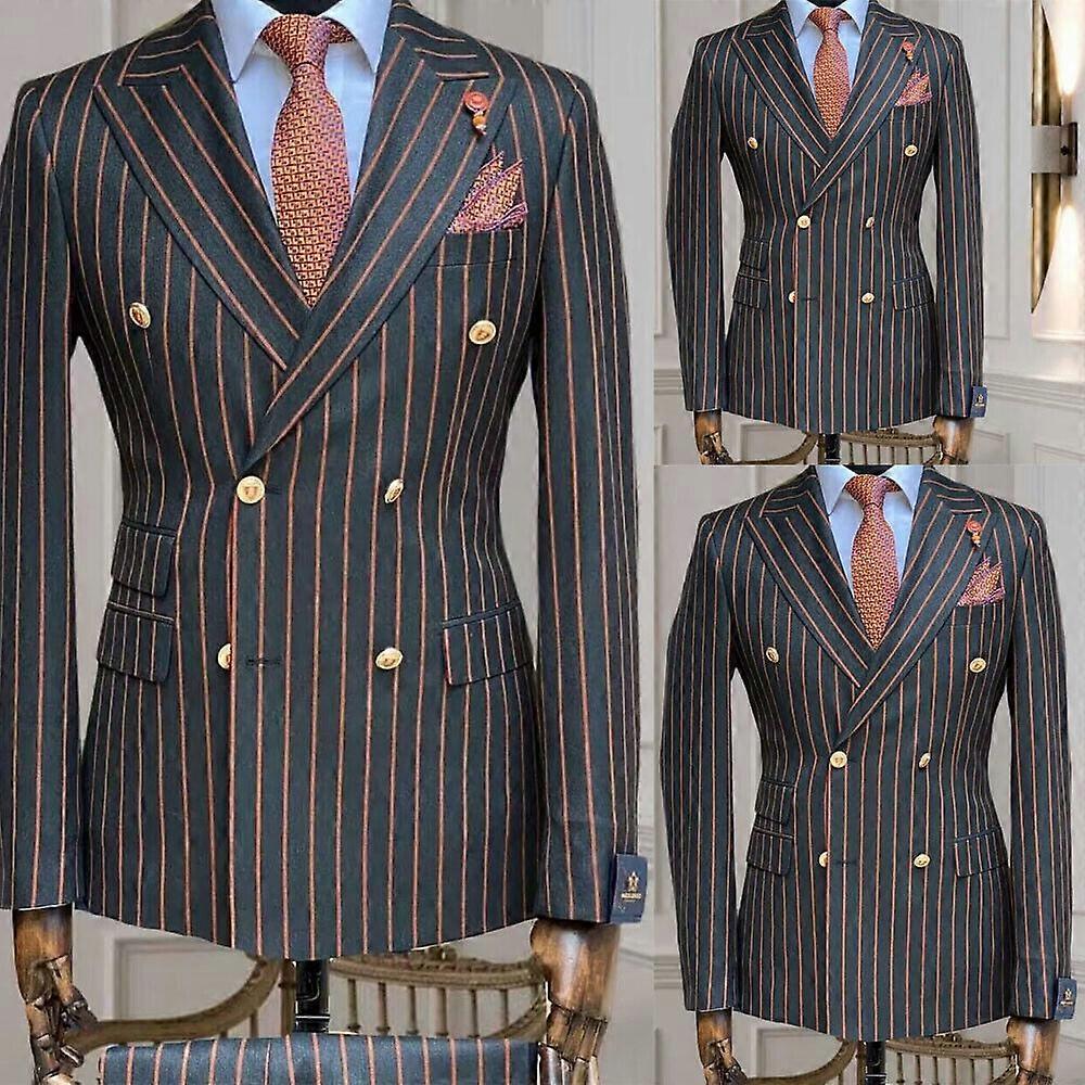 Business Striped Men's Suits 2 Pcs Casual Blazer Slim Fit Wedding Groom Tuxedos