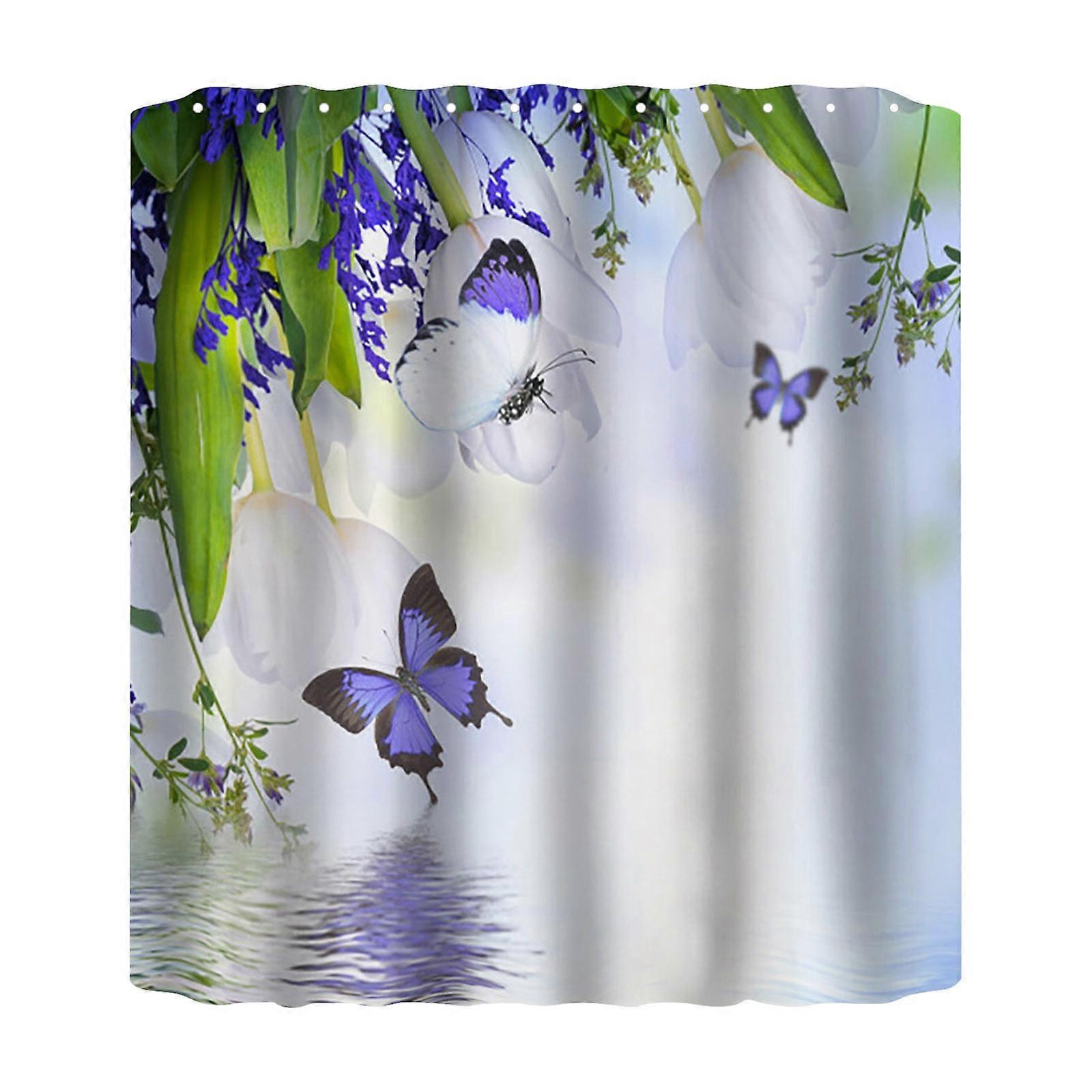 Poaug Floral Print Shower Curtain 70x70 Inch with 12 Plastic Hooks, Waterproof & Machine Washable, Quick Dry Bathroom Decor