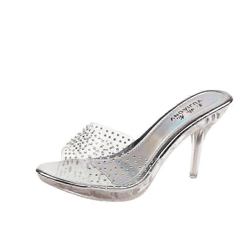 Transparent Crystal Slippers Women Summer Sandals 9cm Sexy High Heel Women Shoes Outdoor Home Fish Mouth Slippers Women Party
