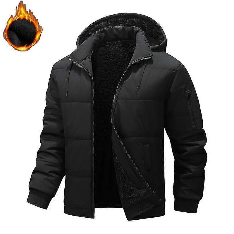 TJL Men's All-Weather Thermal Hooded Puffer Jacket - Waterproof Fleece Lined Lightweight Winter Coat with Pocket for Outdoor & Casual Wear L