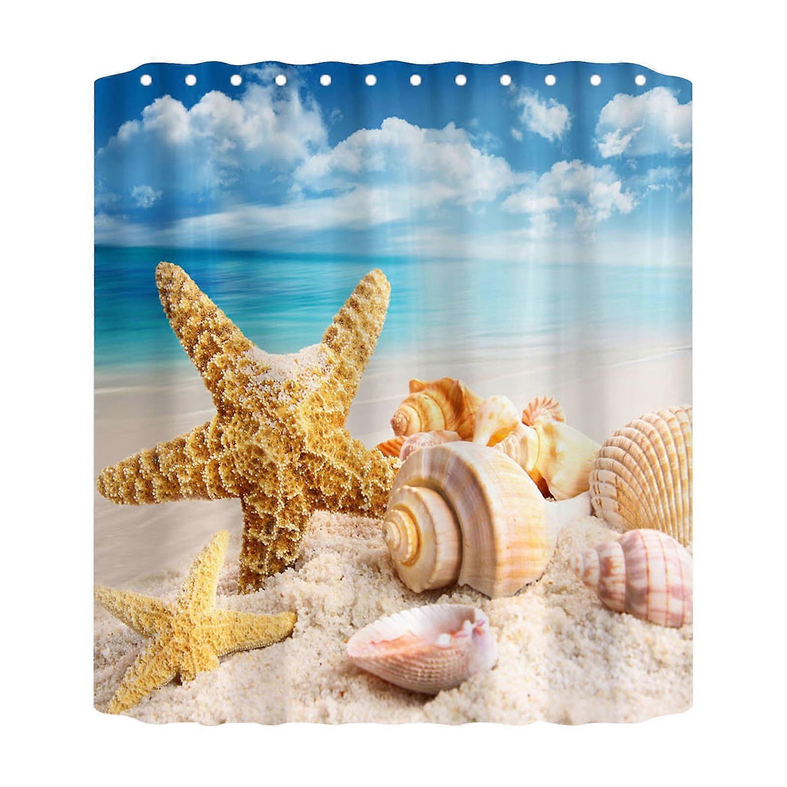 Clearance! Ocean Beach Print Shower Curtain 70x70 inch with 12 Plastic Hooks, Waterproof, Machine Washable, Quick Dry