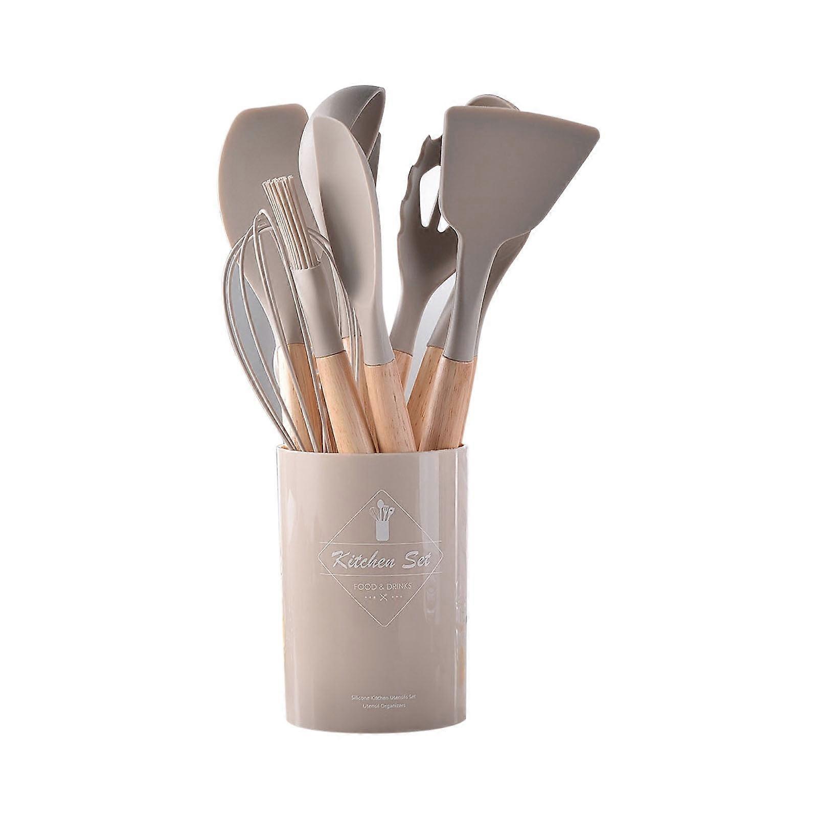 Dgankt 12-Piece Wooden Handle Silicone Kitchenware Set, Round Barrel, Non-Stick, compatible with pot cooking - Kitchen Tools & Home Essentials