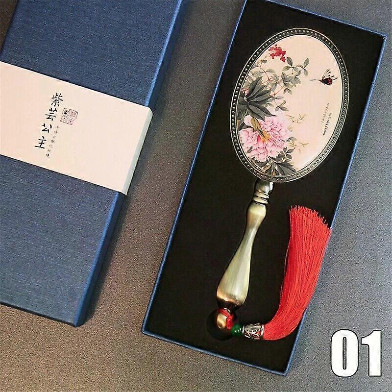 Retro Handheld Makeup Mirror Antique Flower Pattern Handle Makeup Mirror with Gift Box Creative HandHold Vintage Cosmetic Mirror