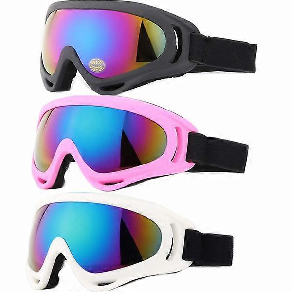 Ski goggles, 3-pack snowboard goggles for children, boys, girls, youth, men and women (black, pink and white)