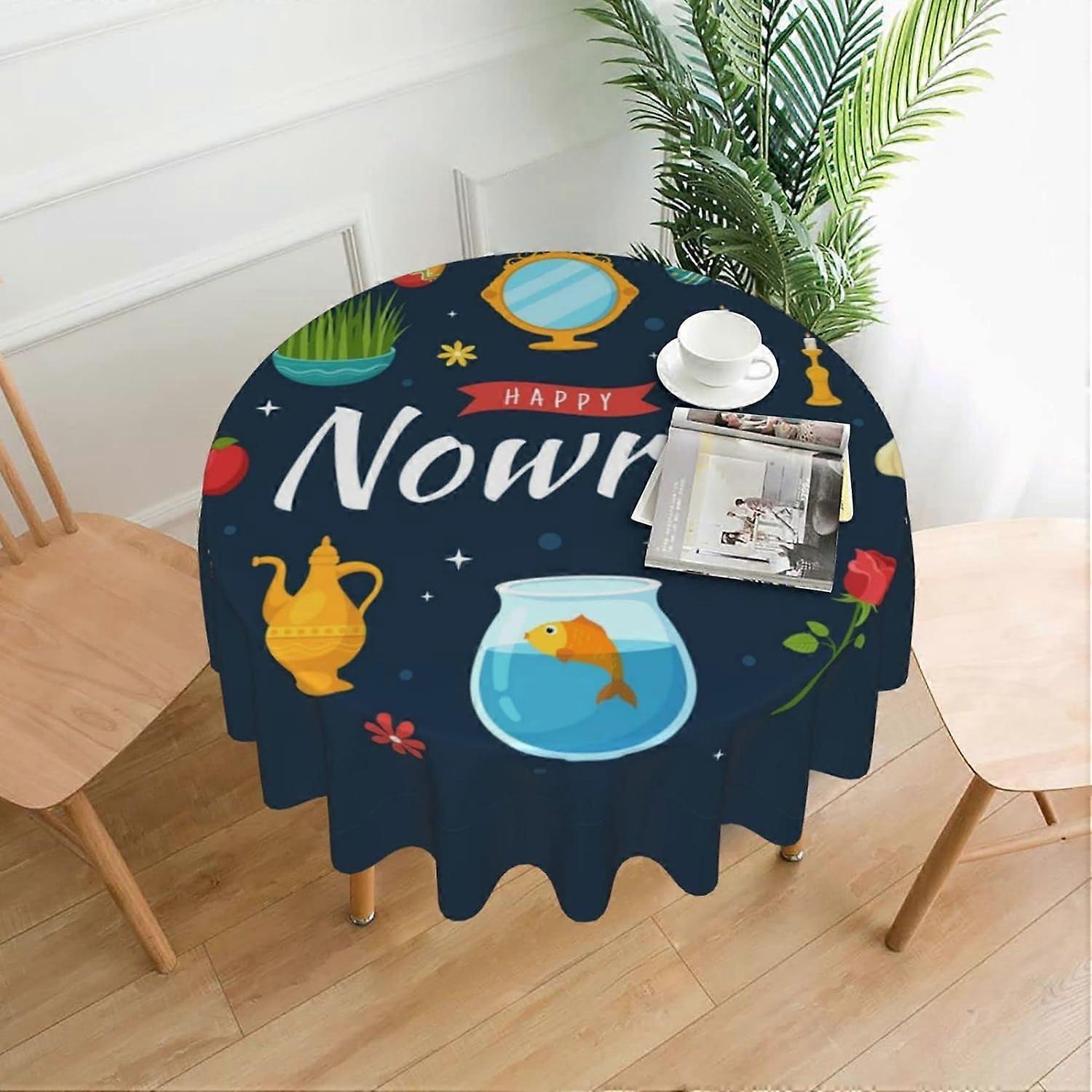 Happy Nowruz Round Tablecloth 60 Inch Table Cover Party Decorative for Winter Holiday Kitchen Party Indoor and Outdoor