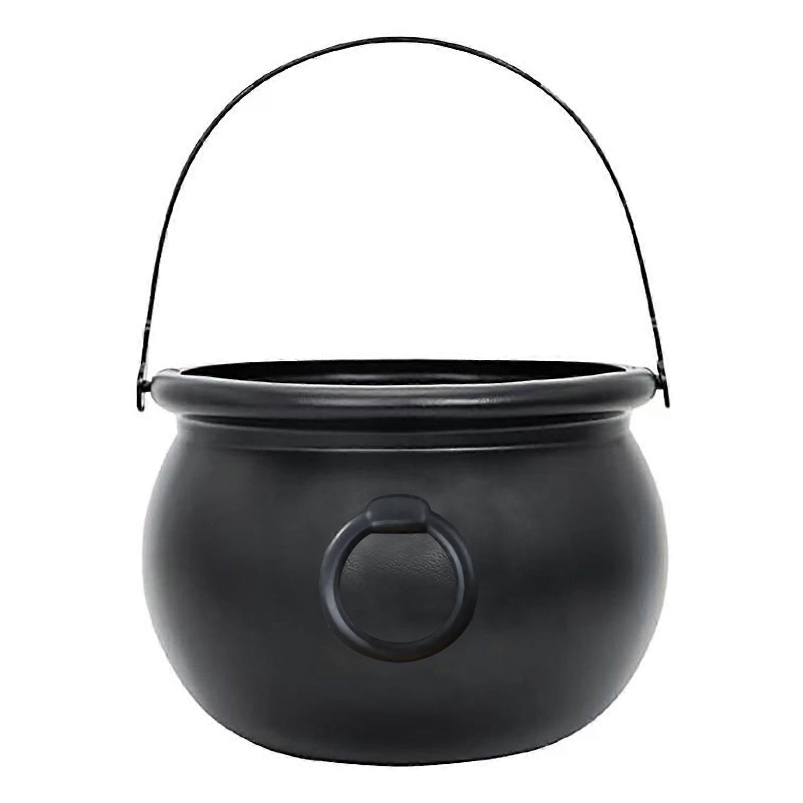 Halloween Candy Pail Holder, Trick or Treat Bucket with Black Trim, Skull Ornament, Mini Candy Carrier for Kids (Black)