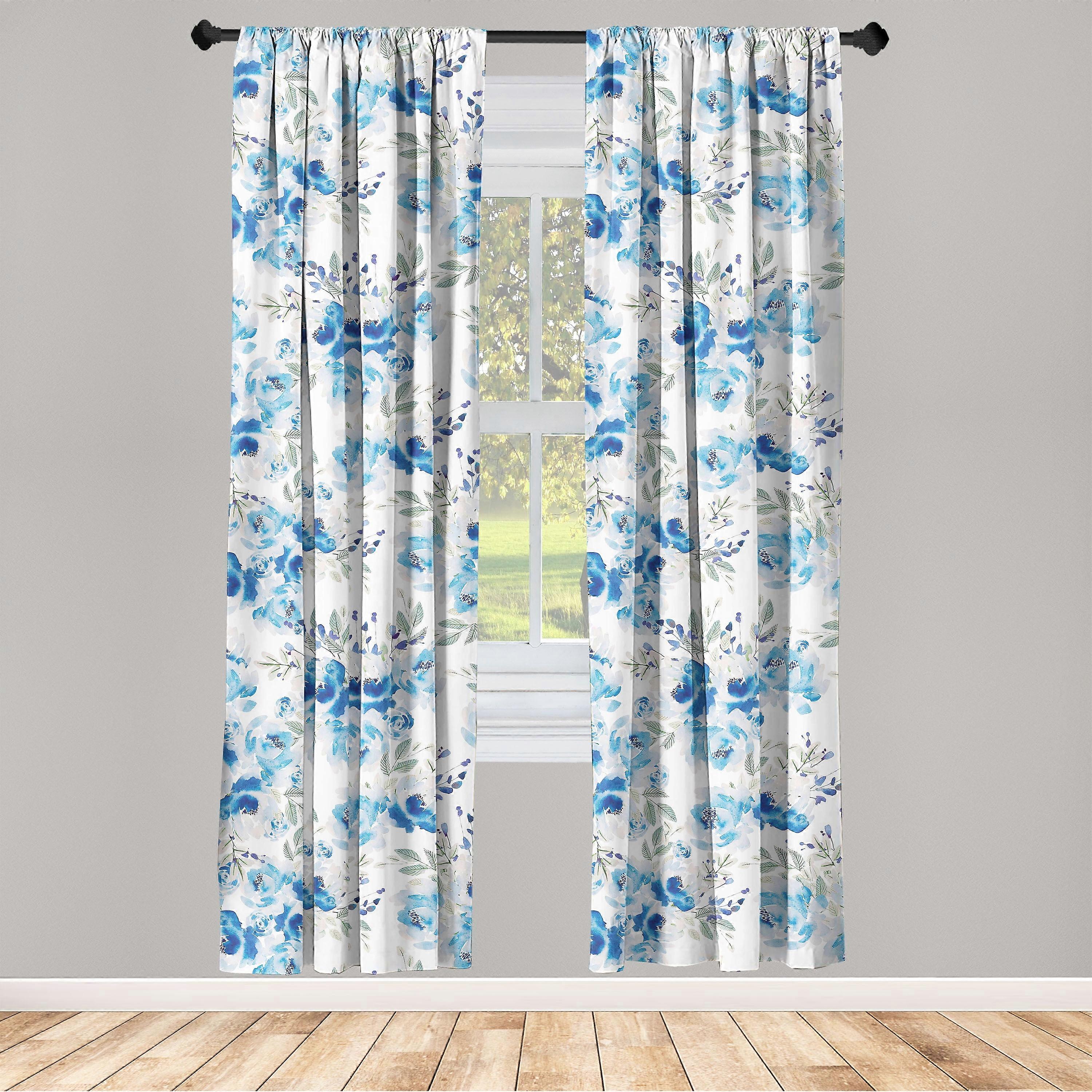 Watercolor Wild Peony & Rose Curtains, Aqua Palette, 2-Panel Set 28"x84", Azure Blue & Pale Seafoam, by Ambesonne