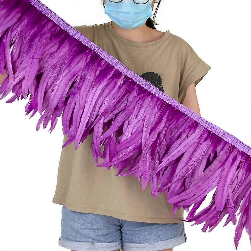 1M Gold Silver Rooster Tail Feather Ribbon Crafts 25-30cm Natural Feathers Fringe for Wedding Party Clothing Dress Decoration Sauce purple 25-30cm