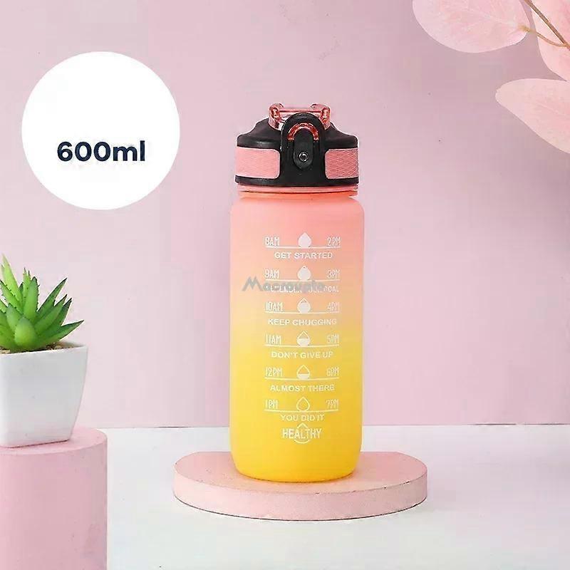 600 Colorful Water Bottle Motivational Drinking Bottle Sports Water Bottle with Time Marker Portable Reusable Plastic Cups