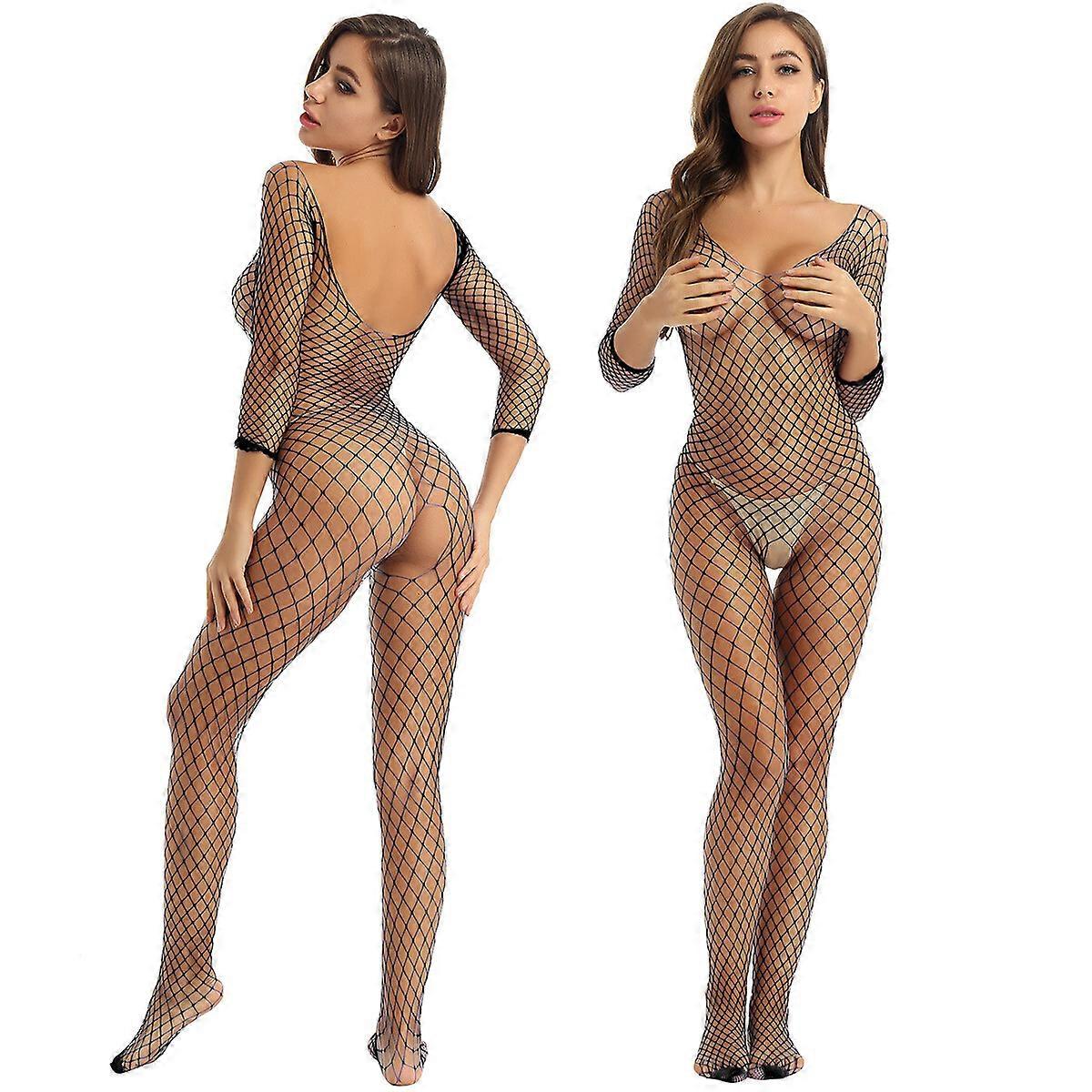 Womens Bodysuit Body Stocking Lingerie Fishnet Babydoll Sleepwear Nightwear