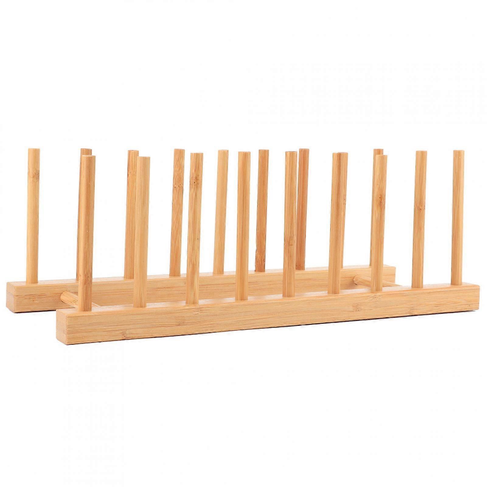 Dish Rack Bamboo Plate Holder Kitchen Cupboard Organiser for Cup Pot Lid Chopping Board