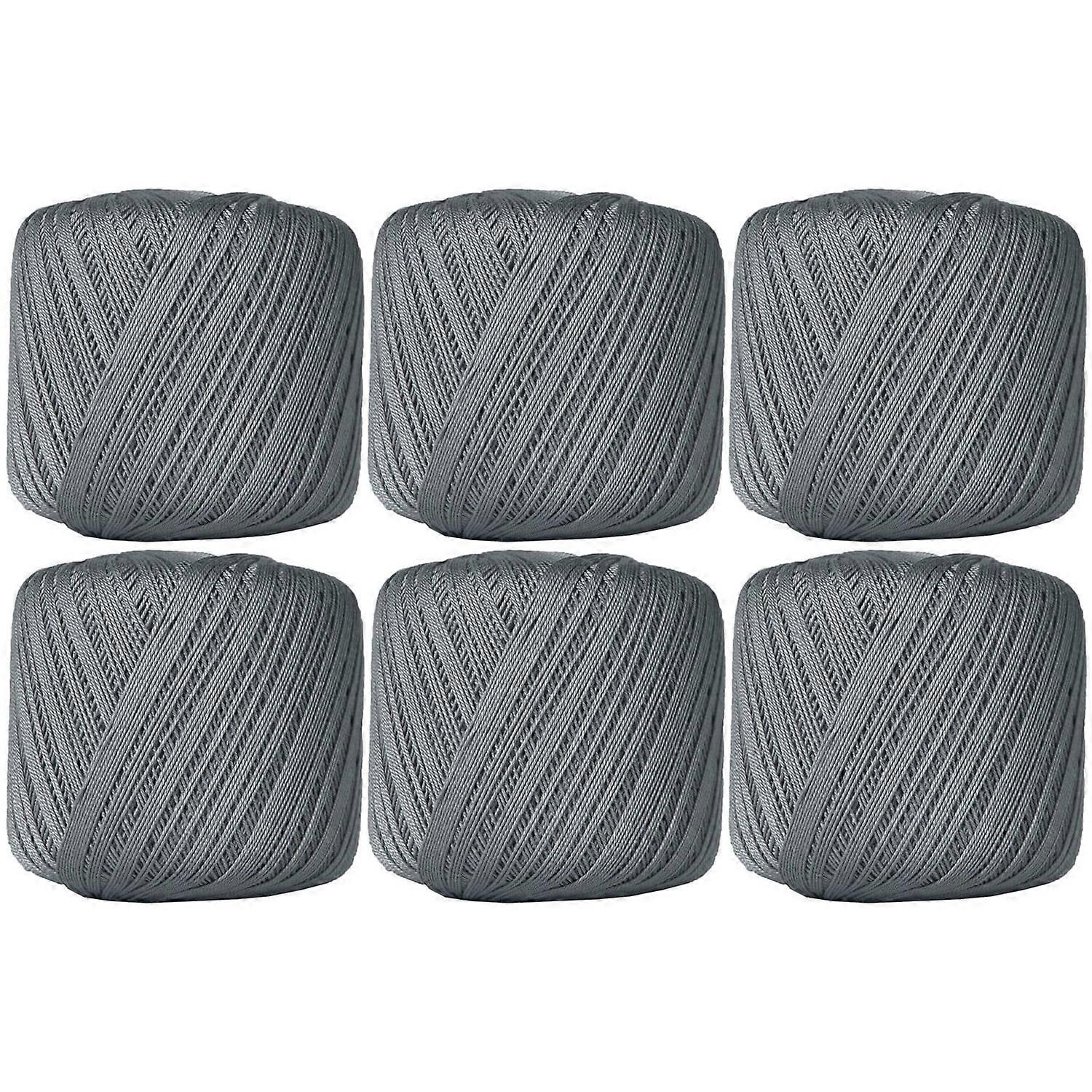 Threadart 6-Pack 100% Pure Mercerized Cotton Crochet Thread, Size 10, Color 25 Gray, 50g Balls (175 Yds) for Tablecloths, Bedspreads, Accessories