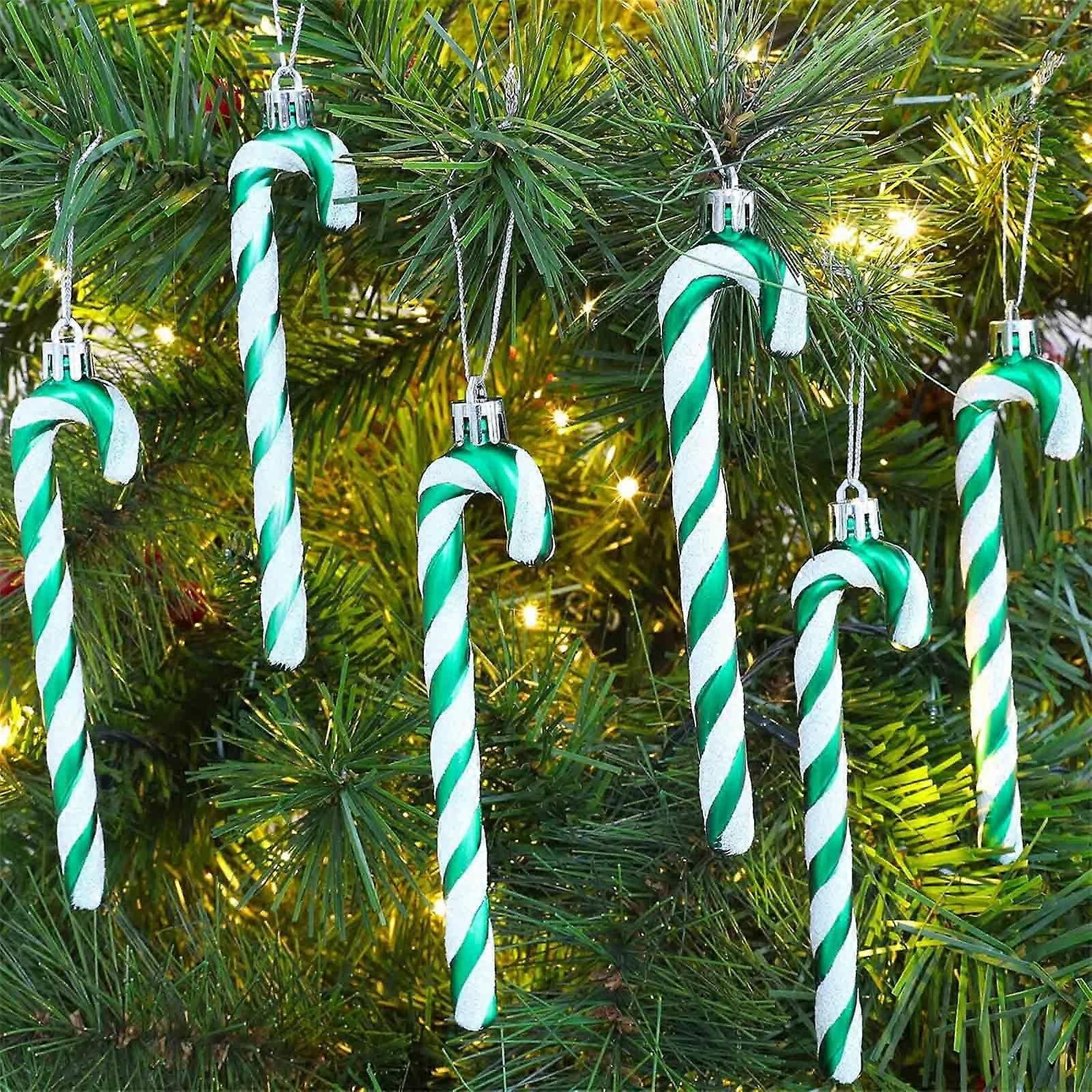 Loyerfyivos 6 Pcs Green Christmas Glitter Candy Cane Ornaments, Plastic Xmas Tree Hanging Decorations for Holiday Party Favors