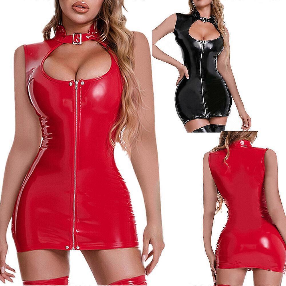 Women Outfit Wetlook Mini Dress Bodysuit Music Festival Costume Shiny Gown
