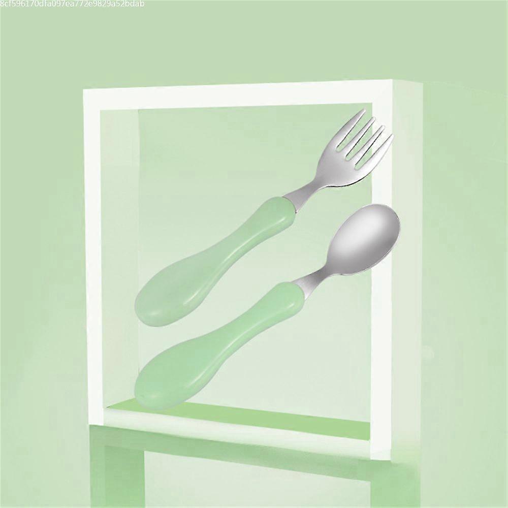 304 Stainless Steel Cartoon fork Spoon Set, Pink/Green, Children's Tableware