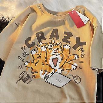 Funny Cartoon Cat Print 2025 Korean Ins Loose Short Sleeved T-shirt - Casual, Trendy, Unisex, Soft, Summer Wear