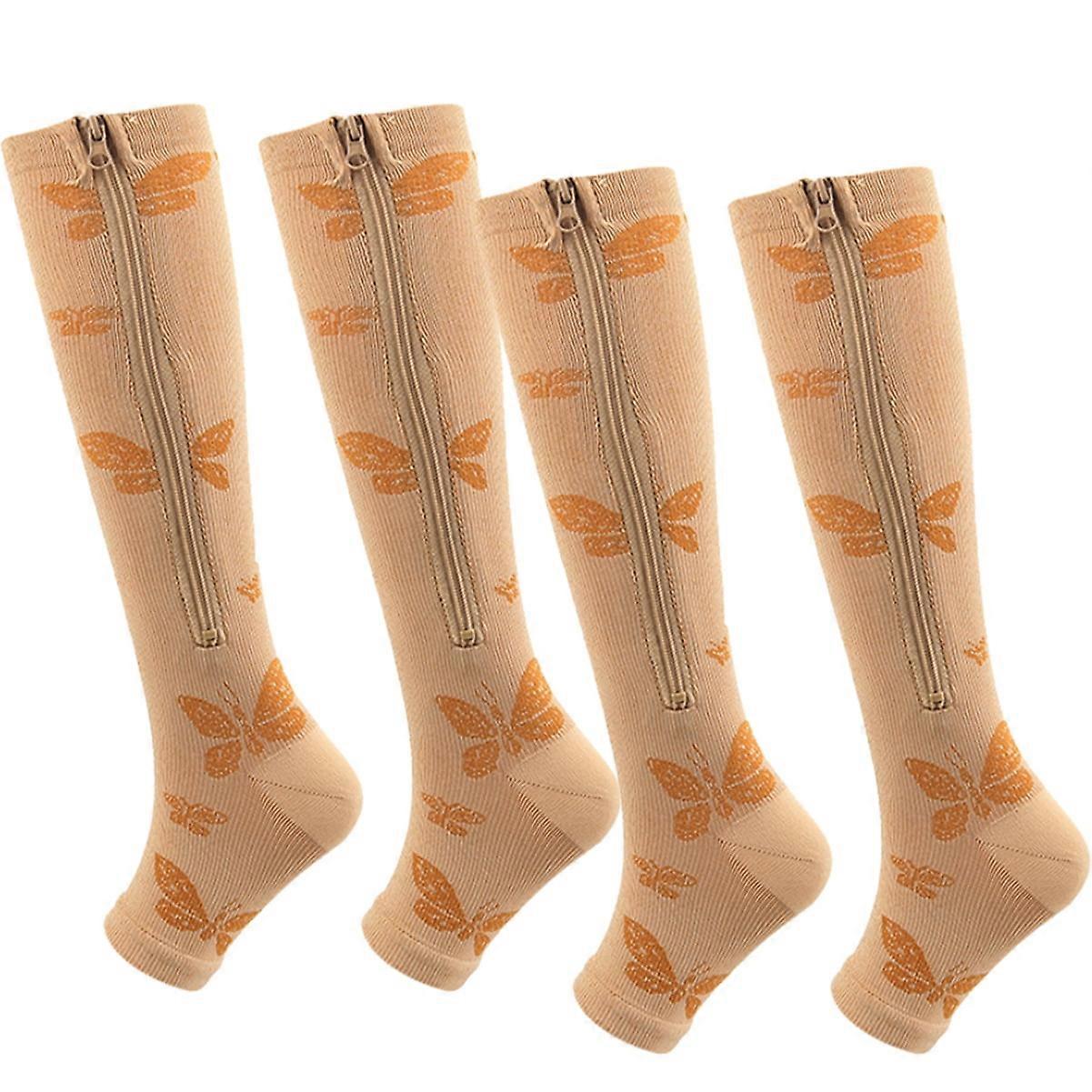 15-20mmHg Zipper Compression Socks for Women and Men, Knee High Medical Support Socks for Varicose Veins, Swelling, Post-surgery (2 Pairs)