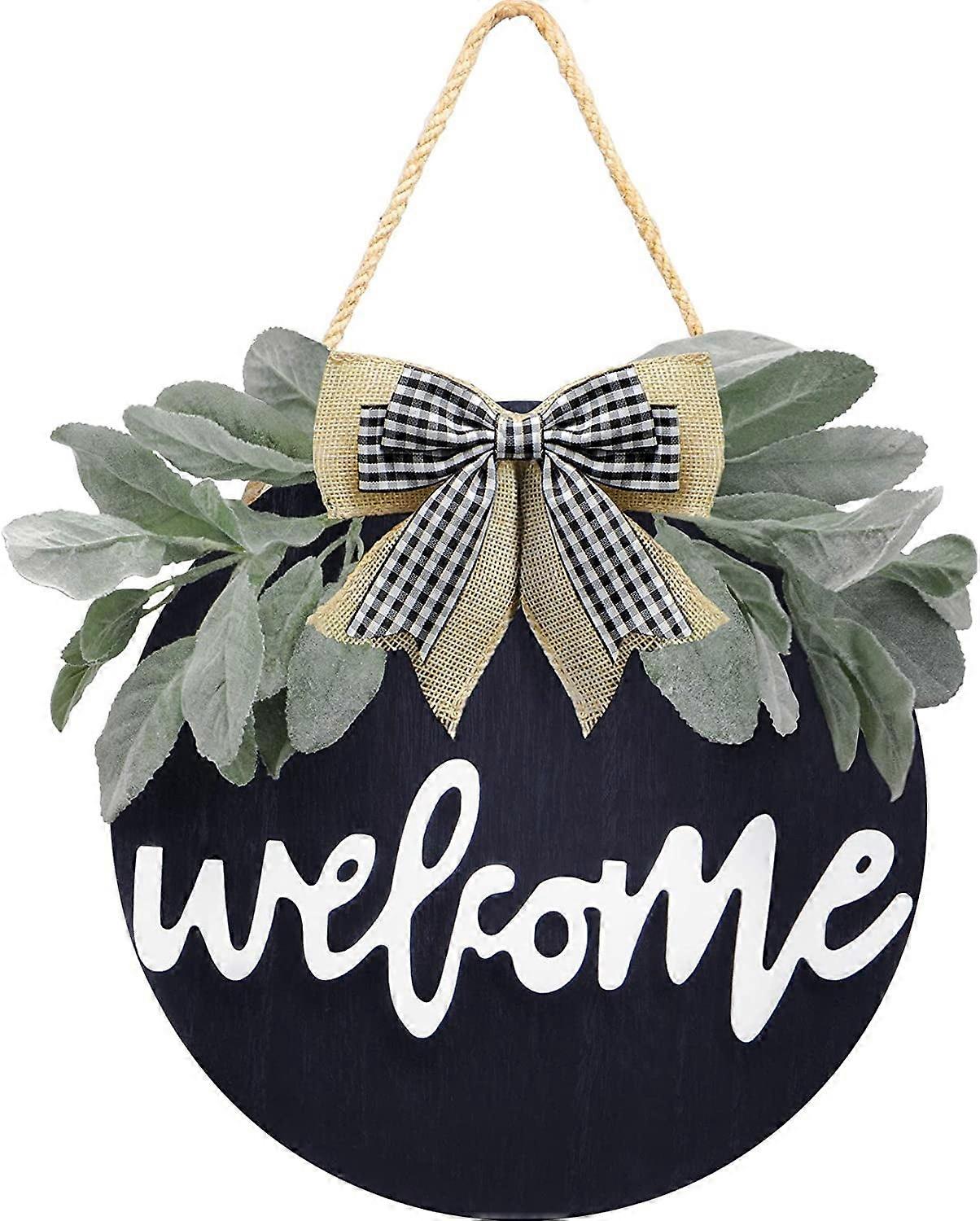 Welcome Sign for Front Door, Front Door Decor, Country Farmhouse Porch with Eucalyptus Buffalo Bow Beads for Home Decoration,Black