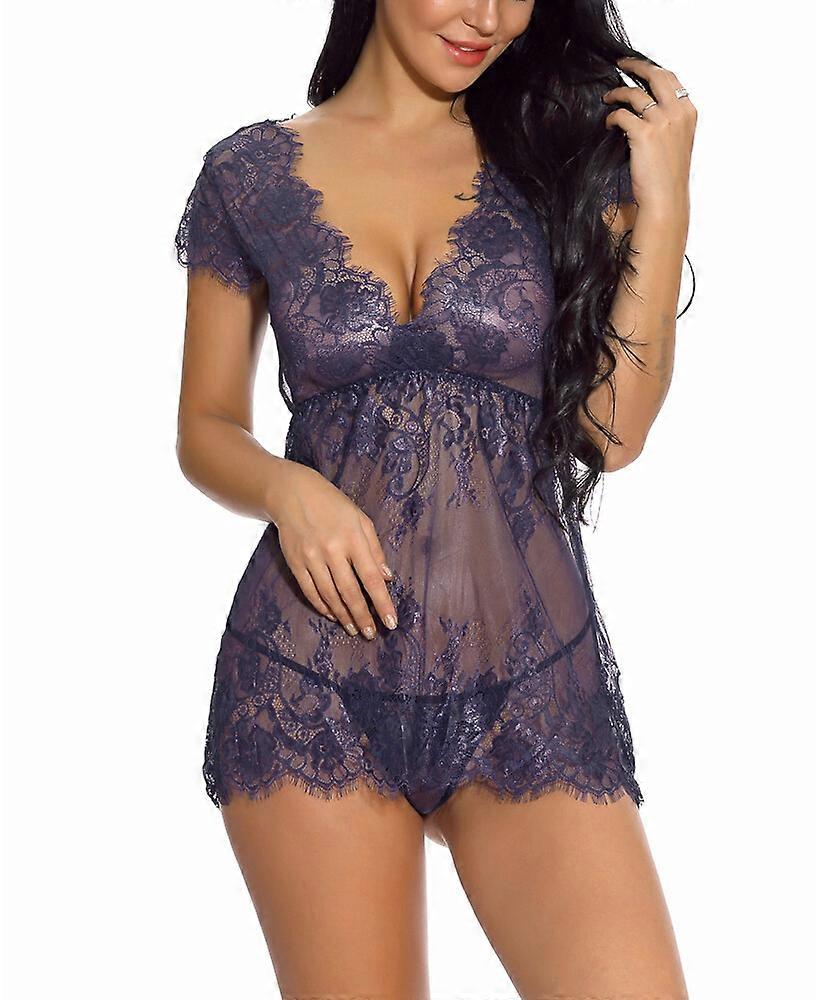 Women's Kimono Robe Set Sheer Lace Babydoll Lingerie Nightgown Chmeise Sleepwear