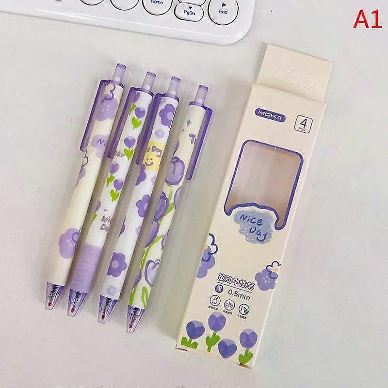 4PCS/set High-quality Beauty Flower Series Student Neutral Pen ST Head Black Water Based Pen Essential Stationery for Students