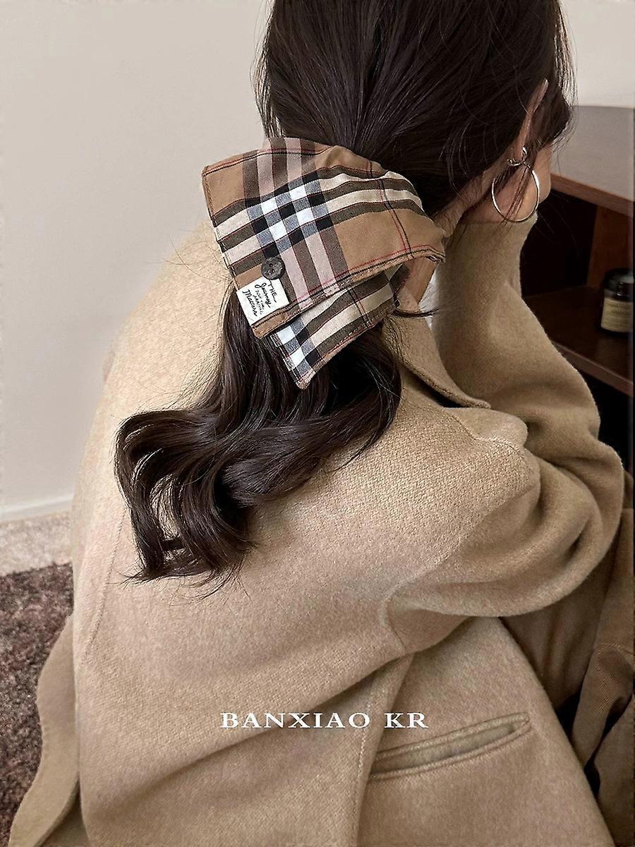 1PC British style vintage checkered square hair tie,versatile fashion button hair tie elastic rubber band low ponytail headwear