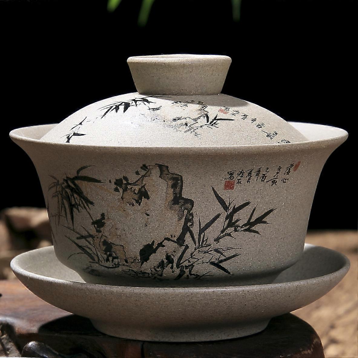 Chinese Kung Fu Teapot Pottery Clay Tea Cup Classical Gaiwan Traditional Handmade Tea Set Cup