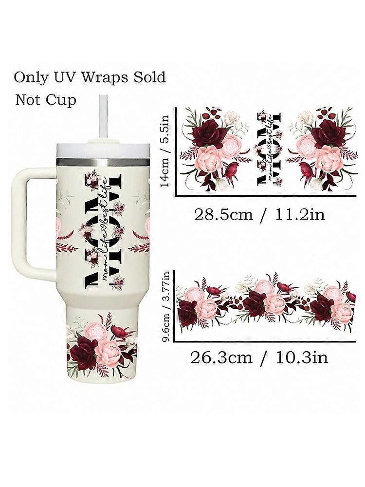 2pcs set Heartwarming Mom Life UV Stickers, 40 Oz Permanent Waterproof Decals for Cups/Tumblers/Bottles, DIY Mother's Day Gifts