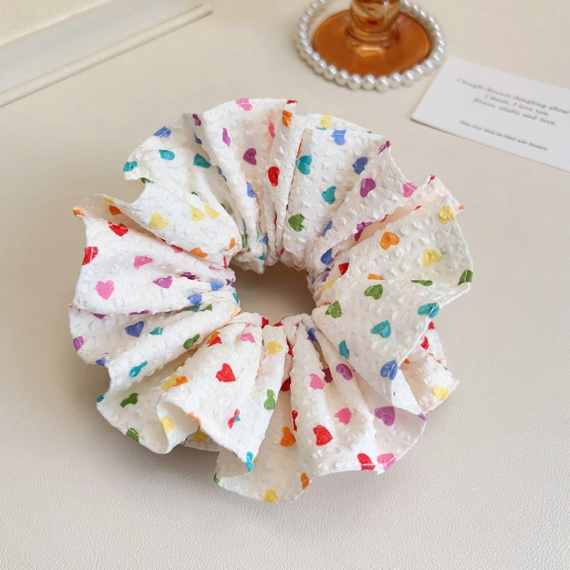 Colorful Heart Double Hair Scrunchies Oversized Korean Lace Square Hair Bands Ponytail Headband Hair Accessories for Women Girls