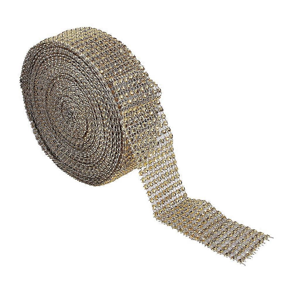 Diamond Mesh Ribbon, Shexton 3 Colors 8 Rows 10 Yard Hot Trimmable Diamond Mesh Ribbon Sparkling Rhinestone Crystal Warp(Gold)