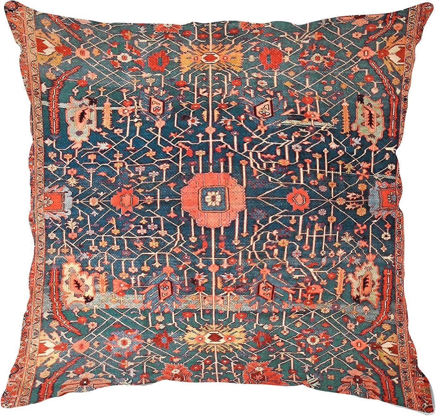 Boho Pillow Covers 16x16 Inch, Vintage Carpet Pattern, Red Orange Antique Ethnic Decorative Square Pillowcase for Home Decor