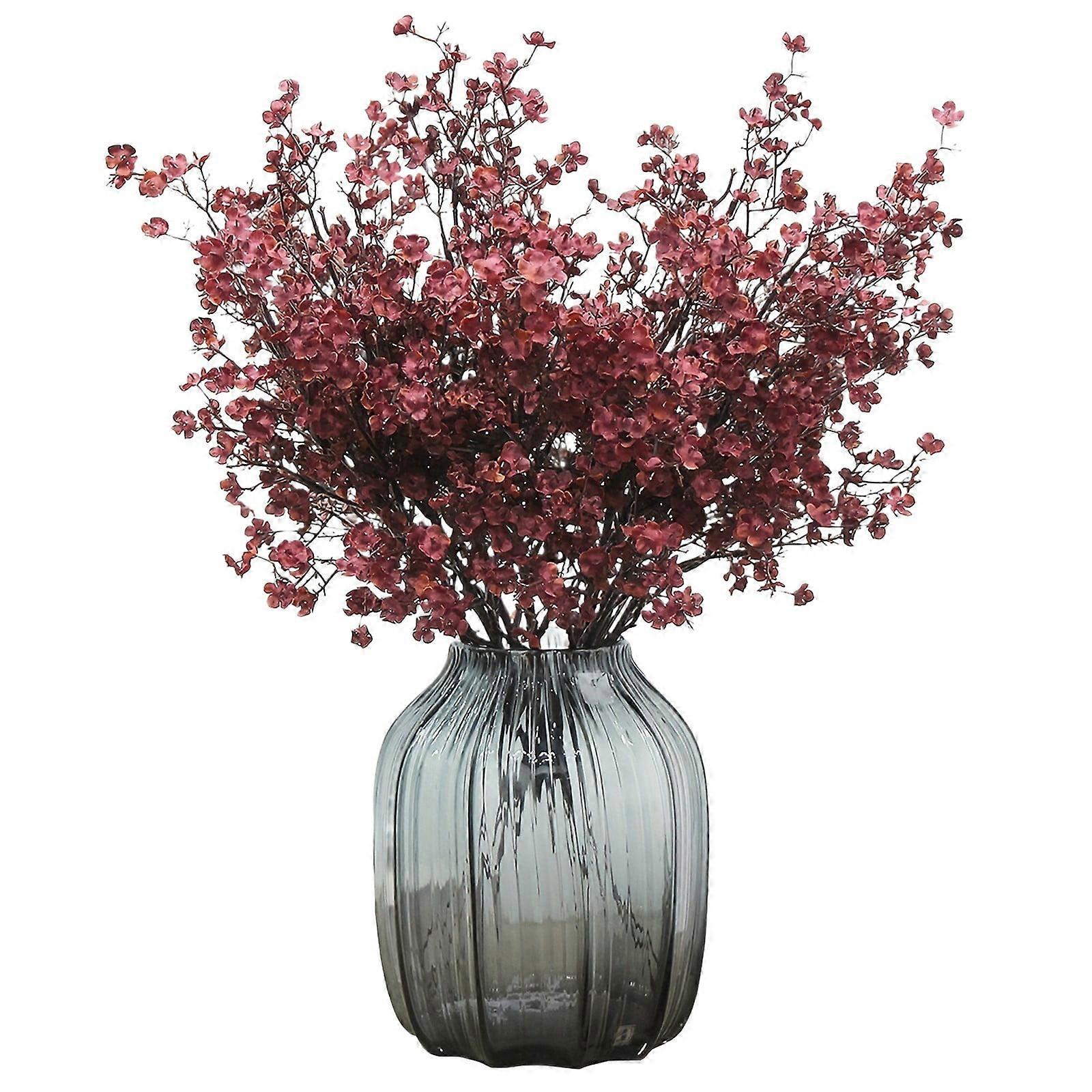 Artificial Cherry Blossom Stems for Home Decor, Wedding Centerpiece Faux Floral Arrangement, Plastic Red3 Blooms by Honglin