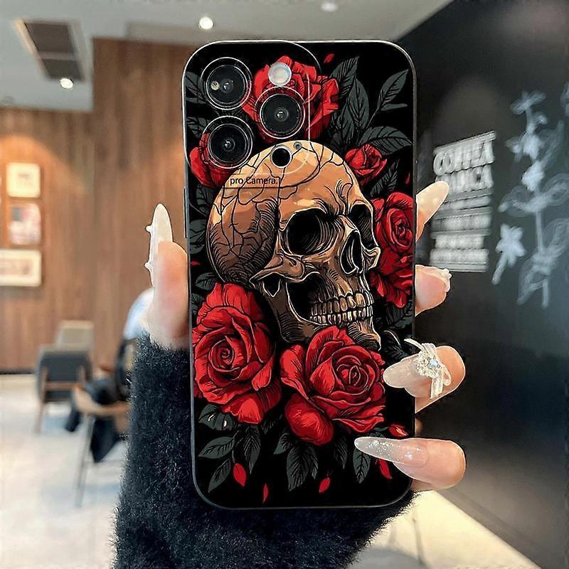 Rose Skull Pattern Phone Case, Soft TPU Cellphone Protective Cases, Total Protective Shockproof Mobile Phone Cover for iPhone 11 12 13 14 15