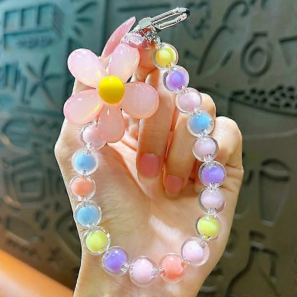 Mobile Phone Strap Pendant Floral Bracelet Creative Hanging Rope Keychain Mobile Phone Lanyard Pearl Floral Anti-Lost Phone Case Lanyard Pink Flower