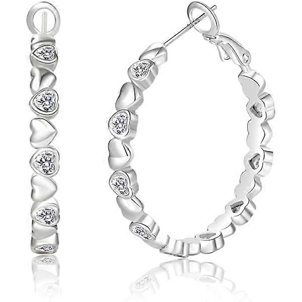 S925 Sterling Silver Earrings Cubic Zirconia Silver Hoop Earrings for Women Hypoallergenic Lightweight Heart Hoop Earrings 30mm 30mm