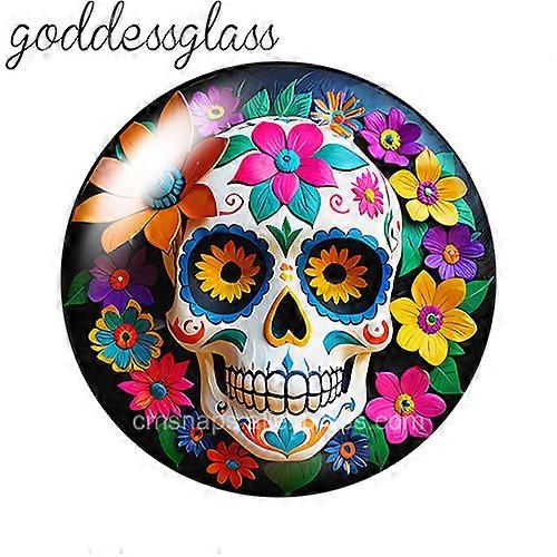 Flower Patterns Skull Mexican Day of the Dead 12mm/18mm/20mm/25mm Round photo glass cabochon flat back Making findings Jewelry