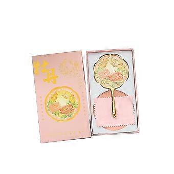 Vintage Chinese Style Metal Mirror Peony Delicate Flower Handheld Mirror Cosmetic Tools Portable Pocket Make-up Mirror Ladies
