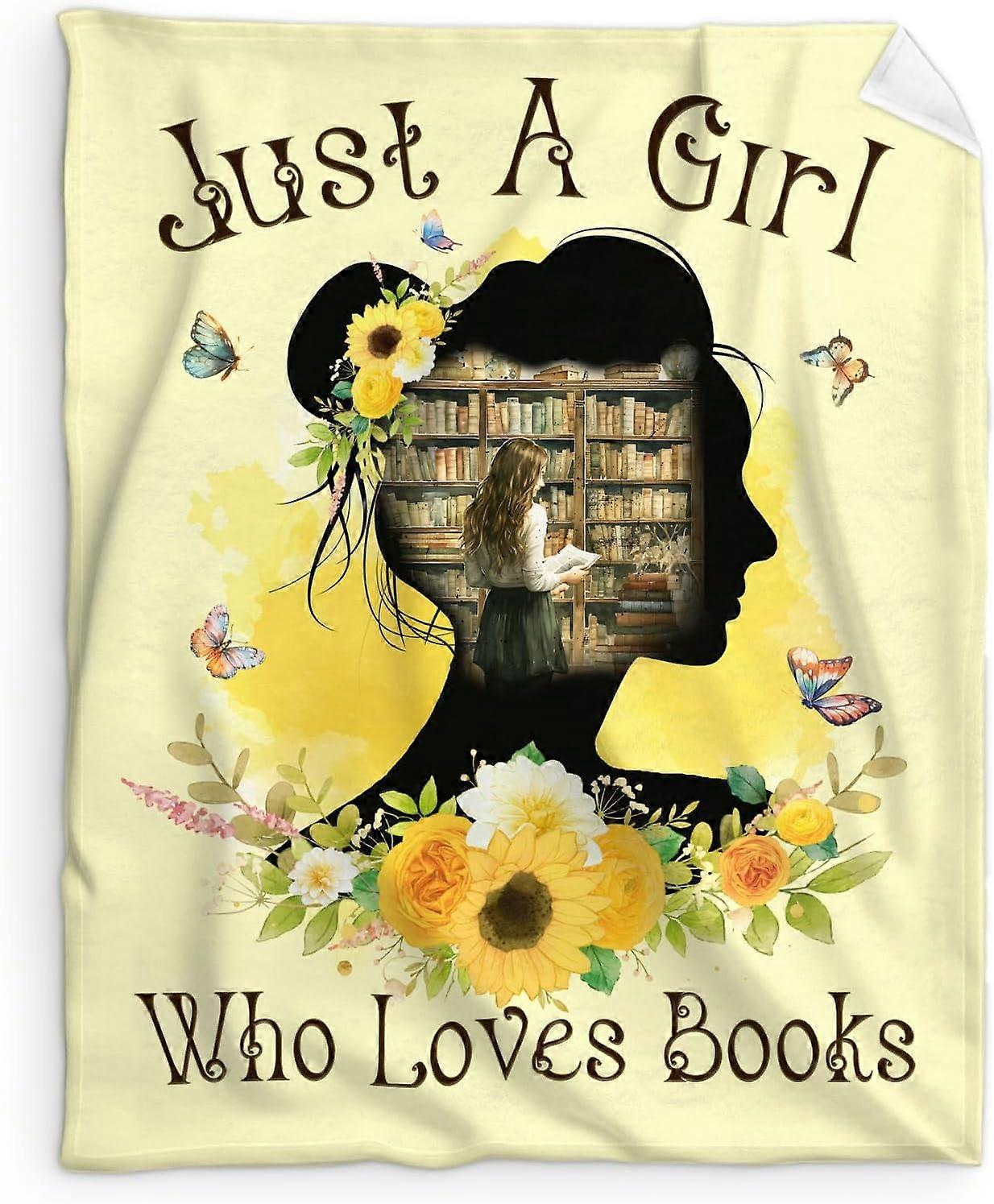 Books Throw Blanket 30x40" for Women Girls - Soft Fuzzy Reading Lovers Gift, Aesthetic Bedroom Decor - Yellow