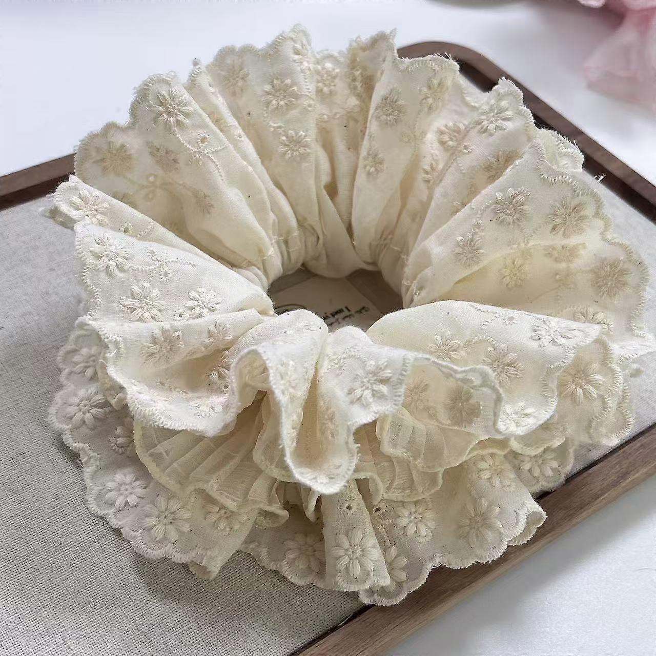 Women Lace Scrunchies Large White Hair Bands Ponytail Holder Tie Hair Hoop Scrunchy Rubber Band Women Headwear Hair Accessories