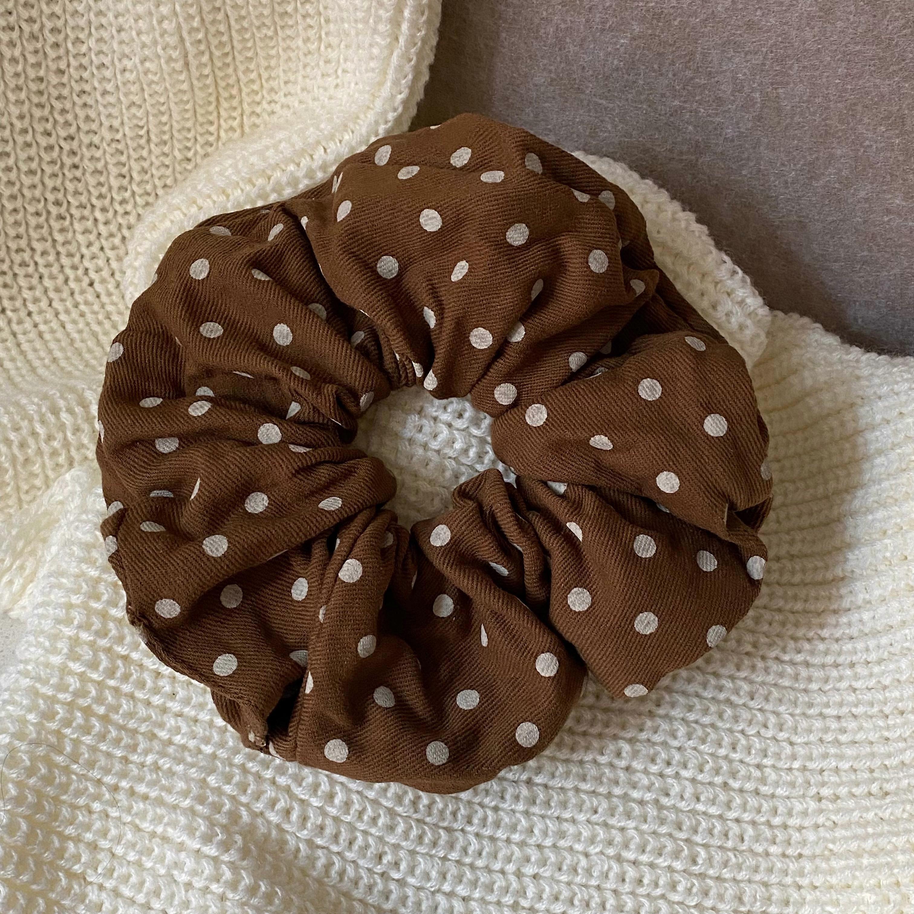 Brown Polka Dot Scrunchie Soft Fabric Hair Accessory For Women, Trendy Hairstyle Decoration Elastic Hair Tie For Daily Wear