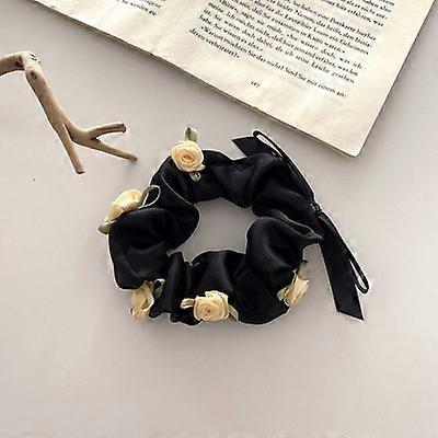 Korean Romantic Red Rose Scrunchies White Black Oversized Hair Ribbons College Student Girls Fairy Elastic Hair Bands Simple Gum