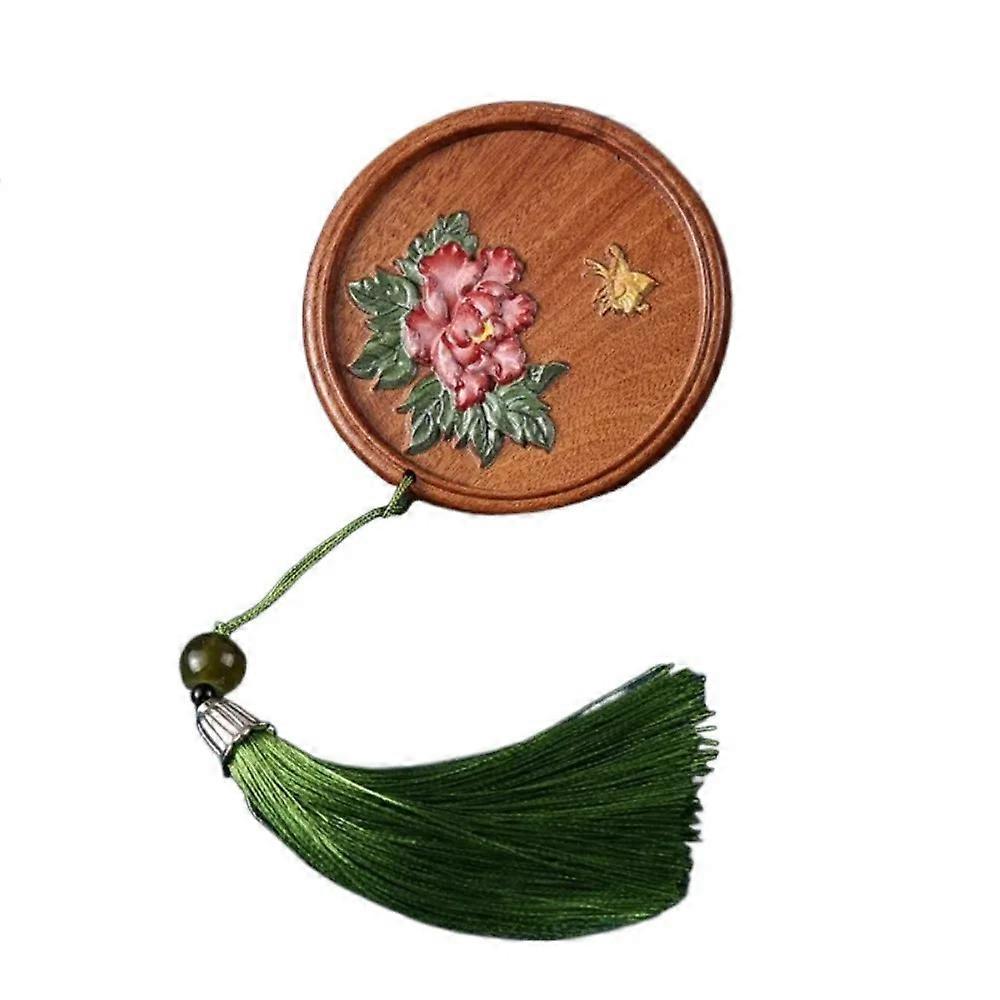 Fashion Portable Chinese Style Handheld Mirror Magpie Fish Wooden Cosmetic Mirror Tassels Round Pocket Makeup Mirror Women