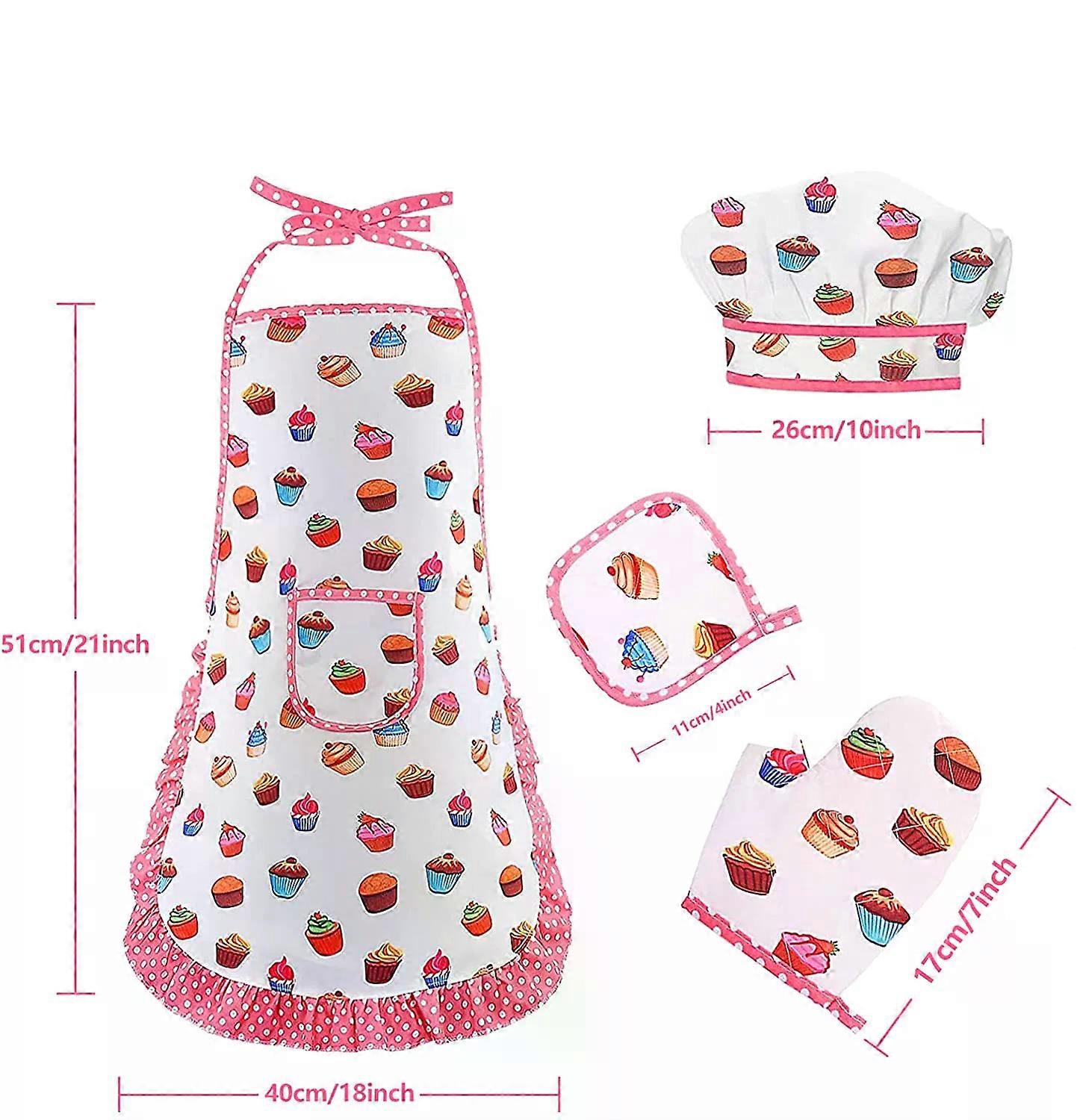 Apron for Little Girls Kids Cooking Baking Set Chef Hat Mitt & Utensil for Toddler Play House Toys Chef Costume Role Play