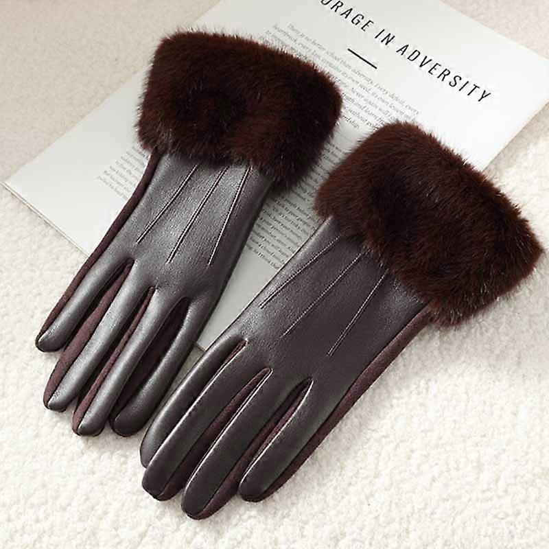 Winter Luxury Women's PU Leather Gloves Wrist Soft Faux Fur Trim Cuff Fashion Elegant Party Warm Touch Screen Drive Cycling