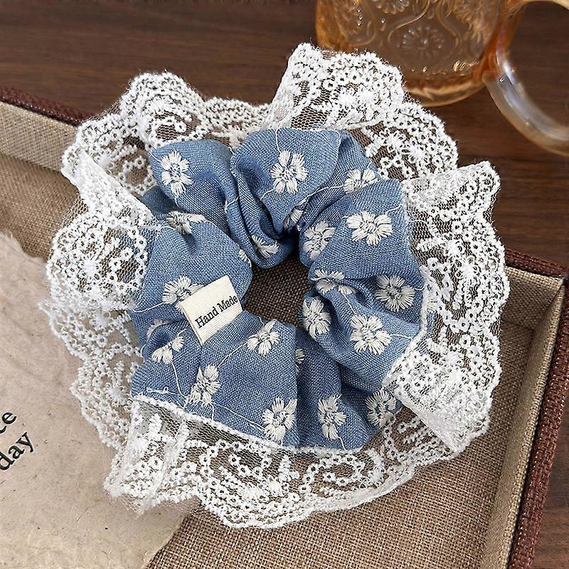 New Style Denim Made Embroidered Lace Large Size Hair Ties Women's Korean Fragmented Flower Hair Scrunchies Accessories 1pc